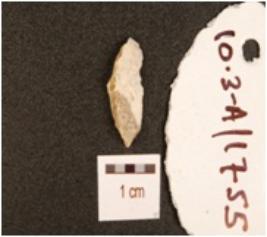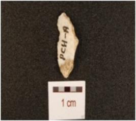 | Description / विवरण | A flake made of chert, having flake scars on surface and irregular edges. |