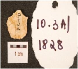 | Description / विवरण | A flake made of chert with flake scars on the surface, prominent bulb at ventral and irregular edges. |