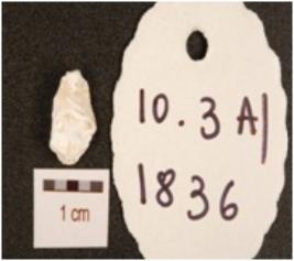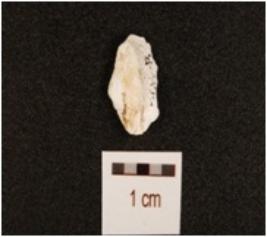 | Description / विवरण | A flake made of chert with flake scars on the surface and irregular edges. |