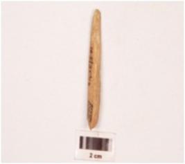 | Description / विवरण | Fragment of a bone point with slightly broken both ends, polished both sides, smooth on surface. |