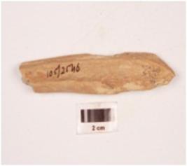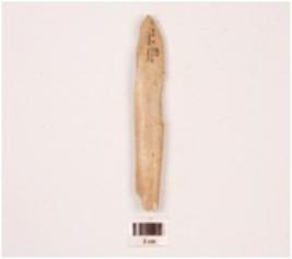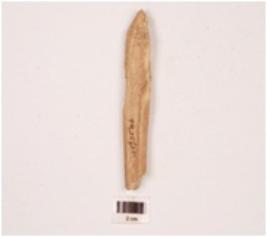 | Description / विवरण | Fragment of a bone point with plano-convex in section, polished both sides, slightly broken both ends, smooth surface. |
