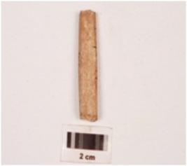 | Description / विवरण | Fragment of a bone point with rectangular in section, porous on surface, heated & polished both sides, slightly broken both ends, rough surface. |