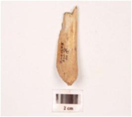 | Description / विवरण | Fragment of a bone point, slightly broken both ends, polished both sides, smooth surface. |