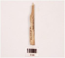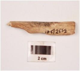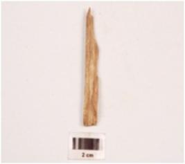| Description / विवरण | Fragment of a bone point with plano-convex in section, polished both sides, slightly broken both ends, rough surface. |