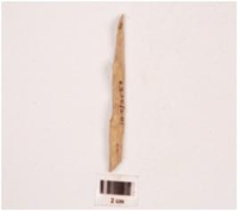 | Description / विवरण | Fragment of a determinate tool, triangular in section, polished both sides, slightly broken both end. |