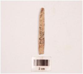 | Description / विवरण | Fragment of a bone point, polished both sides, slightly broken both ends, smooth surface at one side. |