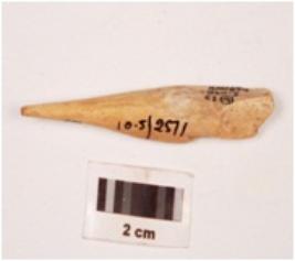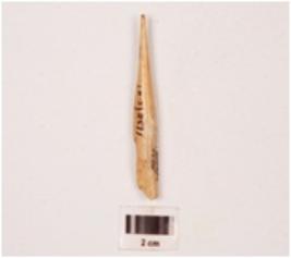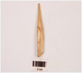 | Description / विवरण | Fragment of a bone point, with slightly broken at one end, pointed at other end, very finely polished both sides, smooth surface. |