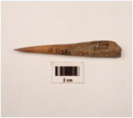 | Description / विवरण | Bone point intact very sharp pointed end smooth and polished surface hollow part of bone one side surface. |