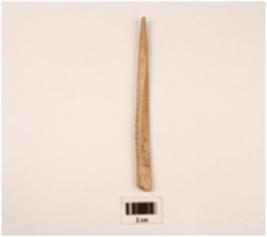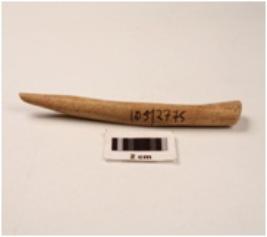 | Description / विवरण | Bone point pointed end broken hollow part of bone one side of surface smooth and polished surface. |