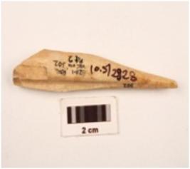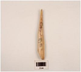 | Description / विवरण | Bone point pointed end slightly broken smooth and poloshed surface grooved on one side surface and hollow part on another side of surface. |