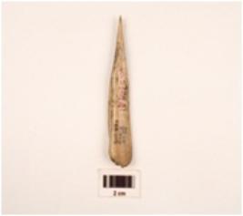 | Description / विवरण | Bone point intact blunt pointed end polished & smooth surface hollow part of bone on one side surface. |
