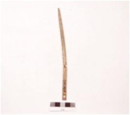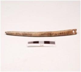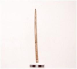 | Description / विवरण | Needle made on bone with an eye and pointed working end polished surface. |