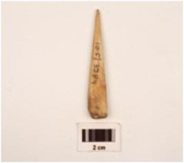 | Description / विवरण | A point made on bone polished surface one thickened end |