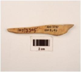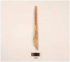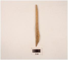 | Description / विवरण | A point made on bone with polished smooth surface slightly broken from pointed tip one thickend end |