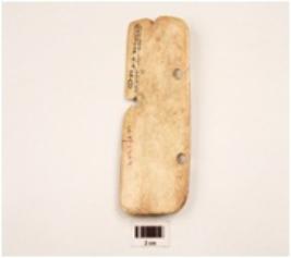 | Description / विवरण | Harvester made on bone with one working age tow perforation persent on the top midrub persent at one surface dull polished and smooth surface. |