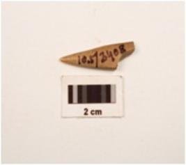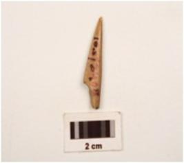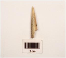 | Description / विवरण | Fragment of a point made on bone pointed at one evd and thick at other end slightly broken at one sine rectangular cross section well polished avd smooth surface. |