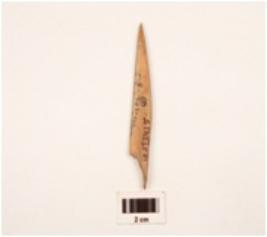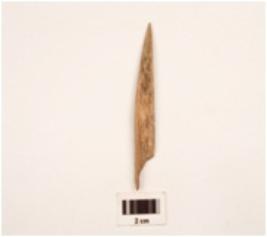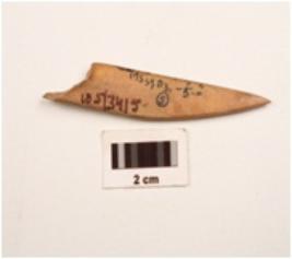 | Description / विवरण | Fragement of on point made by bow pointed at one side and thick at other slightly damaged at one end smooth at dorsal side and rough at ventral side. |