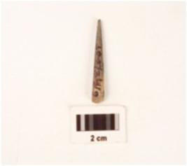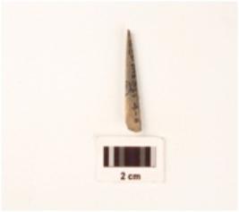| Description / विवरण | Fragment of point modern throud bone pointed at one evd and broked at other side rectangular cross section well polished and smooth surface. |