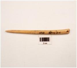 | Description / विवरण | A neddle made on bone pointed of one end eye hole persent at other well polished and smooth surface. |