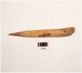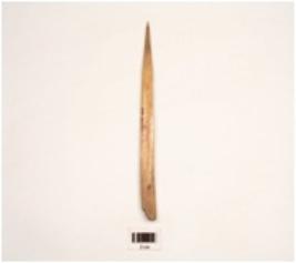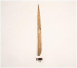 | Description / विवरण | A bone point made on thick and flat bone sharp tip is enflate surface is smooth and polished. |
