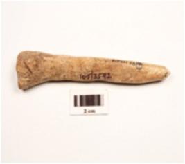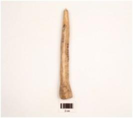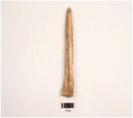 | Description / विवरण | A modified bone point with one end tapered inner surface is grooved smooth and polished surface. |