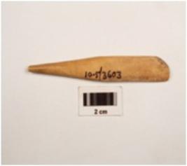 | Description / विवरण | A bone point made on short and flat short bone modified and inner surface is dipressed sharp tip is missing sharp tip is missing smooth and polished surface. |