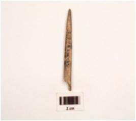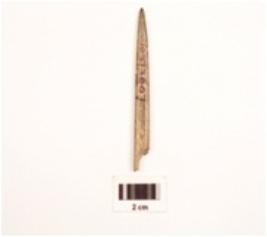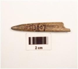 | Description / विवरण | A bone point made on small bone pointed and dipressed on eniven side smooth and polished surface. |