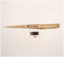 | Description / विवरण | A bone point made with long bone sharp tip is in flat grooved and polished surface. |