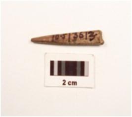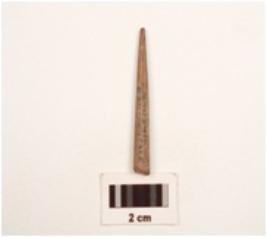 | Description / विवरण | A small bone point with pointed end and longer is broken surface is smooth. |