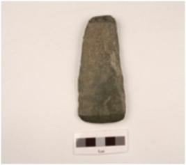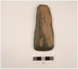 | Description / विवरण | A small stone celt with rectangular butt bevelled edge fully ground or polished weathered surface. |