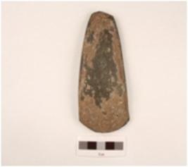 | Description / विवरण | A celt pointed bult bevelled edge fully polished or ground surface weathered surface. |