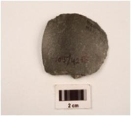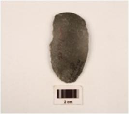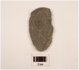 | Description / विवरण | A flake from a polished stone tool undeterminate shape polished smooth outer surface. |