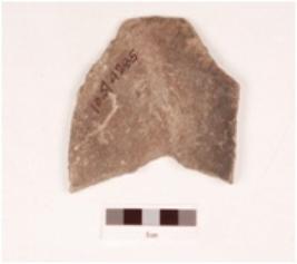 | Description / विवरण | Fragment of basalt stone mace head uneven edges flat smooth one side rougn from other side. |