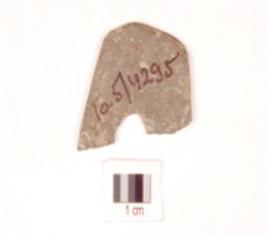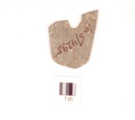 | Description / विवरण | Fragment of basalt stone pick aze, flat smooth surface canvex from one end part of from one end part of perforation visible. |