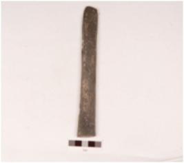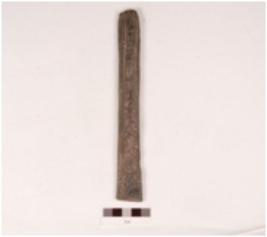 | Description / विवरण | Basalt stone chisel with flat smooth surface with flat marks on surface convex one end. |