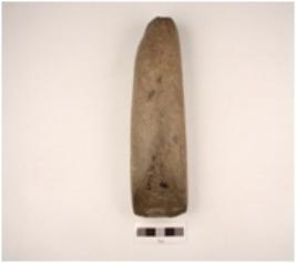 | Description / विवरण | A hand axe made on stone one end is tapered and flat surface is smooth and polished. |