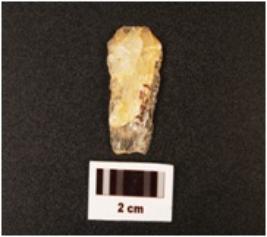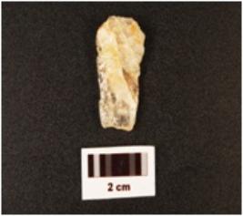 | Description / विवरण | Blade made by quartz with sharp at both parallel sides, proximal end, distal end intack, use wear mark on the cutting edges. |