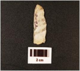 | Description / विवरण | Blade made by quartz with sharp at one side, another blunt, prepared platform on the proximal end, use wear mark on the cutting edges, bulb of percussion. |