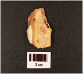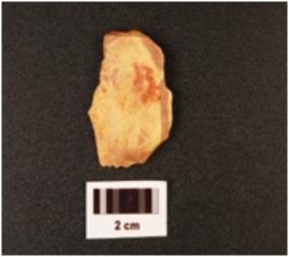 | Description / विवरण | Flake made by chert, blade scars on the surface, irregular shape, bulb of percussion on the ventral side mark on the one cutting edges. |