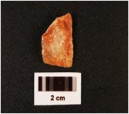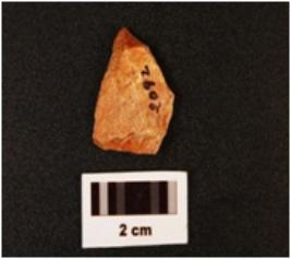 | Description / विवरण | Flake made of chert blade scars on the surface, proximal end broken, distal end intack, mark on the cutting edges, bulb of percussion on the ventral side. |