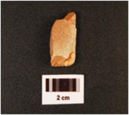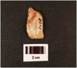 | Description / विवरण | Flake, made by chert, blade scars on the surface, irregular shape, pointed distal end and broad proximal end, mark on the cutting edges. |