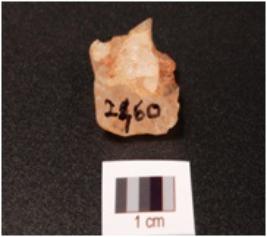 | Description / विवरण | Fragment of a flake on quartz rock crystal, bulb absent. |