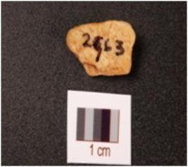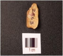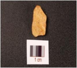 | Description / विवरण | Fragment of a chert flake with flake scars on dorsal side, bulb absent. |