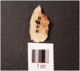 | Description / विवरण | A side scraper on chert, one side blunted convex cutting edge, use-wear marks along cutting edge. |