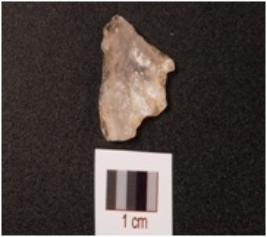 | Description / विवरण | An end struck flake on quartz crystal, prepared platform on proximal end, diffused bulb on ventral side, use-wear marks along. |
