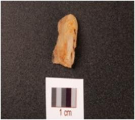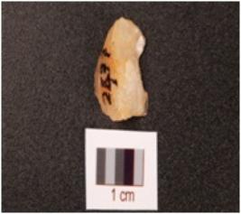 | Description / विवरण | A flake on quartz with use-wear marks on one lateral side bulb absent. |