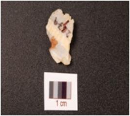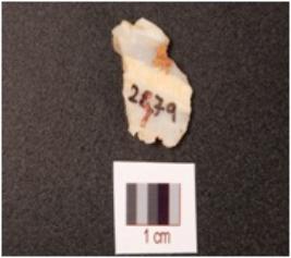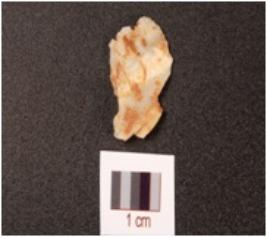 | Description / विवरण | Fragment of a quartz flake, use wear mark along the edges bulb absent. |