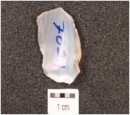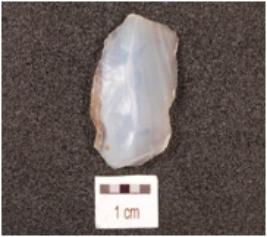 | Description / विवरण | A flake made of chalcedony, flake scars on the dorsal side, transparent and smooth surface. |