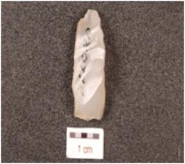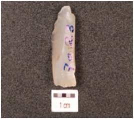 | Description / विवरण | A flake made of chalcedony, flake scars on the dorsal side, wavy cutting edges and smooth surface. |