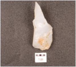| Description / विवरण | A core made of chalcedony with flake scars. |